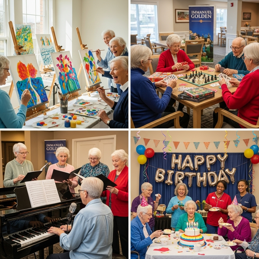 Engaging Social Events: Our community calendar is packed with social events designed to encourage interaction, foster friendships, and make residents feel connected to each other. Whether it’s a themed party, a movie night, or a seasonal celebration, there’s always something happening at Immanuel Golden to bring residents together.
